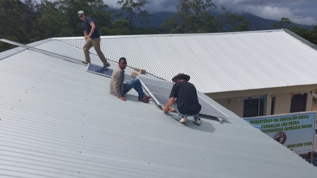 It started with the spark of an idea and the final connection to deliver solar power to Letefoho Senior Highschool was to find a qualified and experienced installer. After an exhaustive search, and a number of detours, Eddie put Rory in touch with an electrician, Jeff Coulter and his son, Julian. Jeff is an electrician from Darwin, who works for Power Water in the Northern Territory where he trains electrical apprentices.